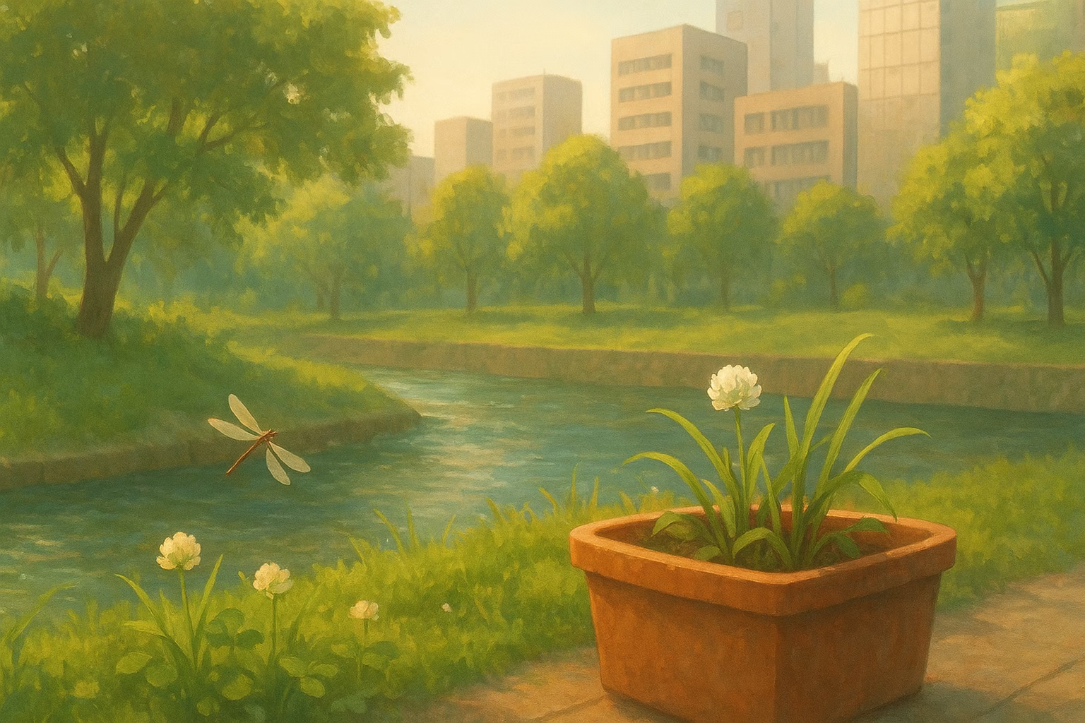けれど川の中にはメダカやドジョウが泳ぎ、岸辺にはシロツメクサが咲き、トンボが飛んでいた。